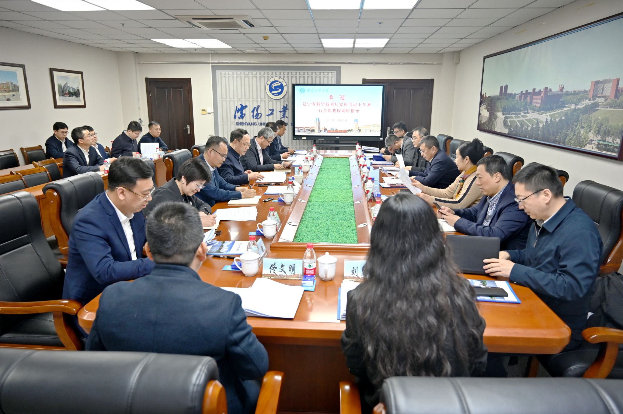 3月11日,省科技厅党组书记王学来,副厅长金莉、杨辉,办公室主任汪铁伦、政策法规处处长胡波、科技成果处处长宋兴奎、诚信处处长吕锡洋等一行来我校调研科技创新工作。学校党委书记贾玉明,党委副书记、校长张珂,党委常委、副校长臧喜民、夏明超及相关部门负责人陪同调研。