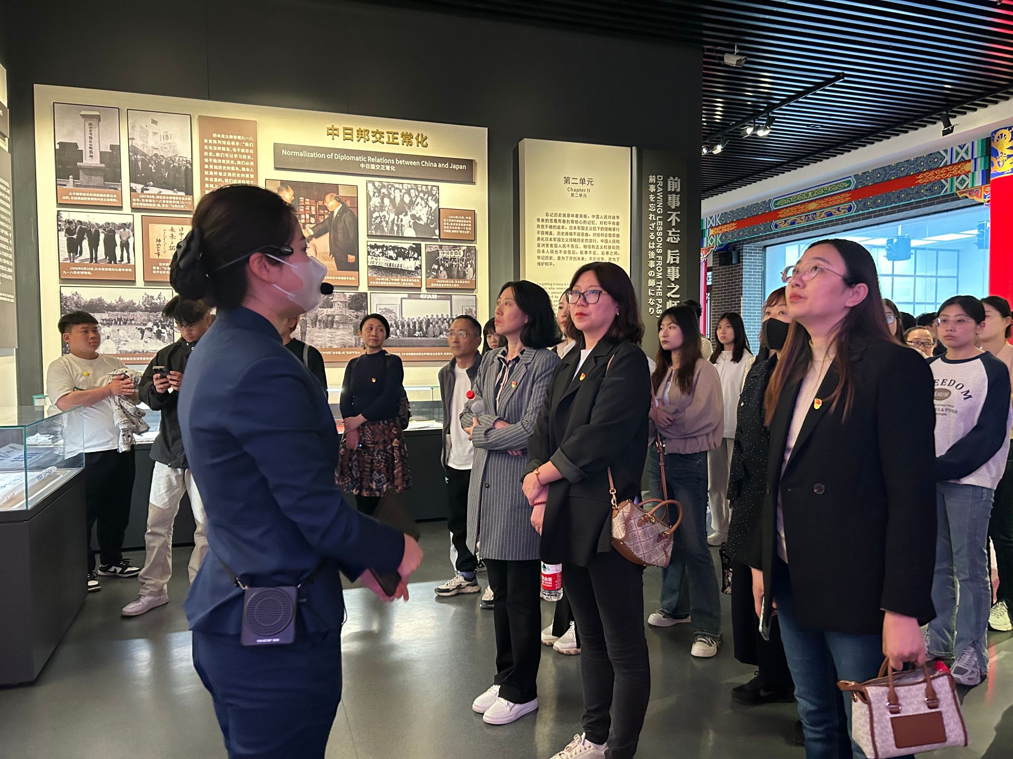 博物馆内,师生们在讲解员的带领下观看了相关影视资料,参观了大量文物和历史照片,回顾了 “九·一八”事变及中国东北被殖民统治的屈辱历史,感受着东北人民和全国人民一道,在中国共产党领导下不屈不挠、浴血奋战,最终取得抗日战争伟大胜利的民族精神。